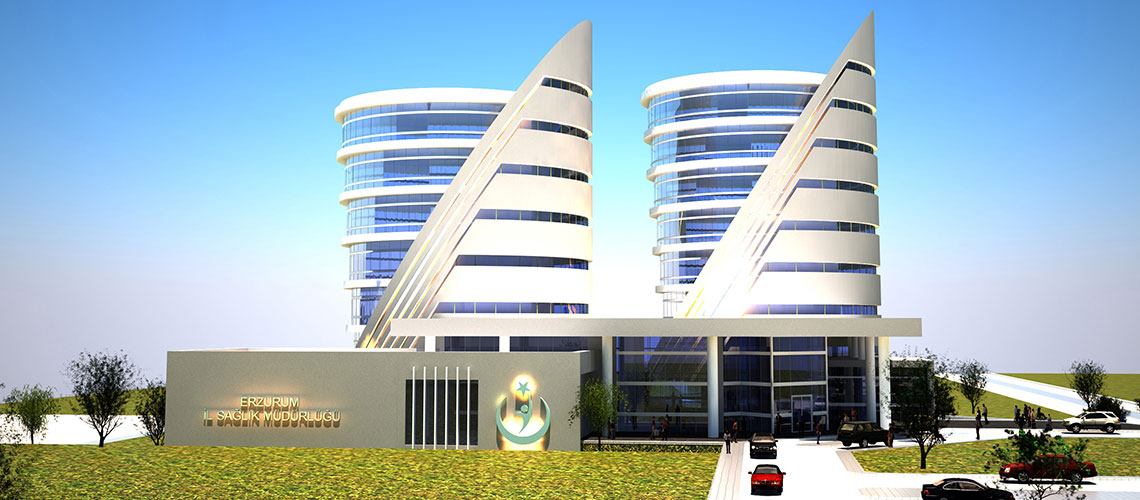 Yapı, İl Sağlık Müdürlüğü ve Genel Sekreterlik olmak üzere iki kule halinde tasarlanmıştır. Kulelere, zemin katta ortak alanların bulunduğu bir atriumdan ulaşılmaktadır. Kule tasarımında Erzurum iklim koşulları değerlendirilmiştir. Kulelerin kuzeye bakan cephelerinde ısı kayıplarını minimumda tutabilmek için kabuklar tasarlanmıştır.Bu alanlara destek birimleri yerleştirilmiştir. Güneye bakan cephelerinde ise güneş ışığından maksimum verimi elde edecek şekilde şeffaf yüzeyler tasarlanmıştır. Gün ışığı ve doğal hava alan bu cephelerde çalışma ofisleri yer almaktadır. Yapının genel kütlesinde arazi yakınında bulunan Erzurum Sağlık Kampüsüne uyumlu olması istenmiştir.