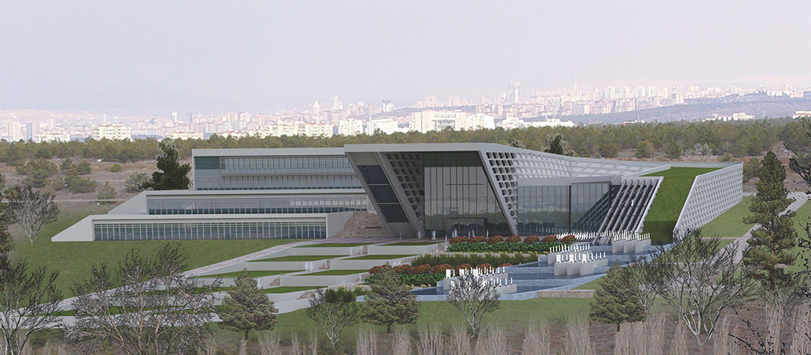 Müze; Vadinin yeşil dokusunu benimseyen, saygı duyan, mimari tarzıyla yeşilden doğan ve dönerek yine yeşile açılan bir enerji patlamasıdır.