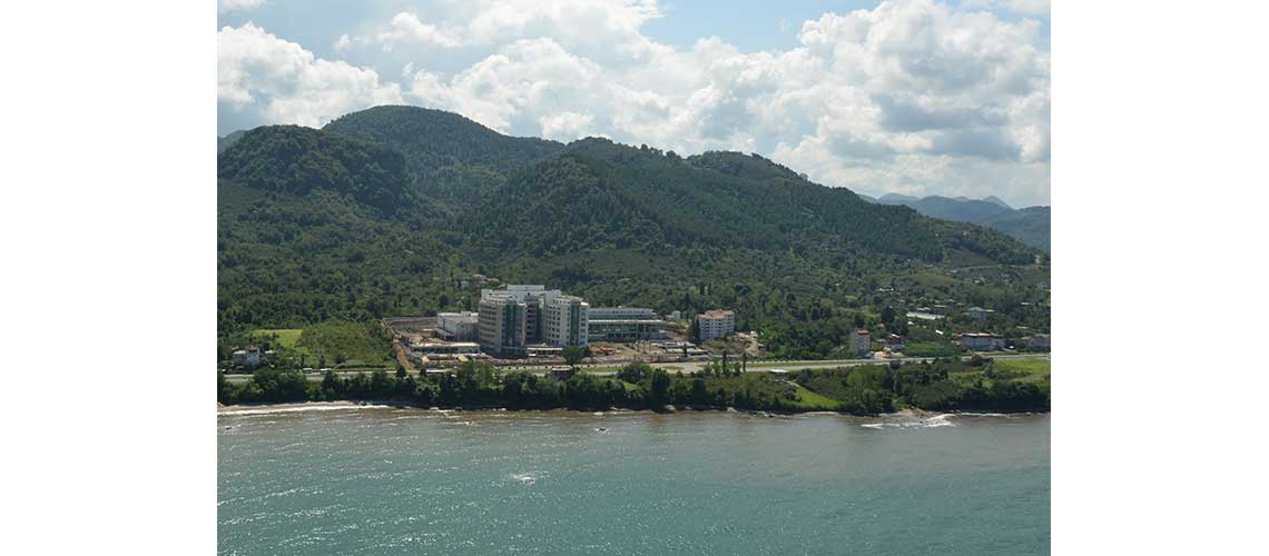 300 yataklı Ünye Hastanesi 38,000 m² arsa üzerine 55,000 m² inşaat alanı olarak yapılmıştır. Karadeniz kıyısında yer alan hastane yapısı manzaradan tüm hastaların yararlanabileceği şekilde tasarlanmıştır. Tüm hasta yatak odaları, hastane giriş holleri, gündüz odaları ve poliklinik giriş holleri manzaraya açılmaktadır. Yoğun yağışlı bölgede hastaneye ait tüm girişler üstü kapalı hastane meydanından sağlanmaktadır. Eğimli arazide bulanan hastaneye farklı kotlarda ulaşımlar sağlanarak tüm mahalleri doğal ışık ve hava almaları sağlanmıştır. Kapalı kalan kısımlar kapalı otopark olarak değerlendirilmiştir.