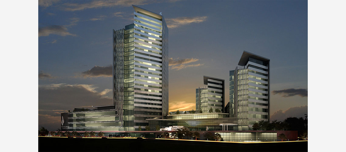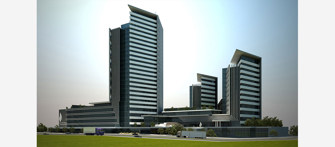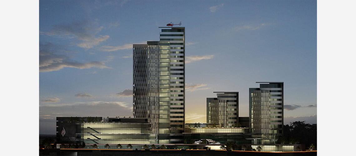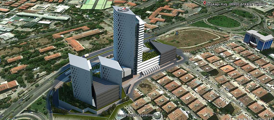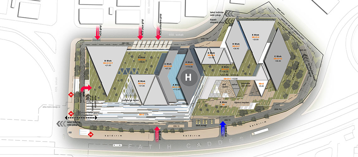 Kampüs’ün ana kurgusu eğitim ve sağlık fonksiyonlarının bir arada, ancak sirkülasyonlarının ayrı çözülmesi üzerinedir. Her iki fonksiyonun birleştiği klinikler KULE olarak çözülmüştür. Arsadaki yoğun yerleşimin KULE’ye taşınarak zemin öğrenciler için yeşil alanlar, Anfi Tiyatro ve kafeteryalar oluşturulmuştur. Kule yüksekliği ile Ankara için kentsel simge olmaktadır. Bir taraftan da hasta yatak odalarında mahremiyet oluşturarak, manzaraya açılmaktadır. Üst katlarda bulunan VIP katları panaromik Ankara manzarasına sahiptir. Binanın üst katında personel yemekhanesi ve restoran bulunmaktadır.